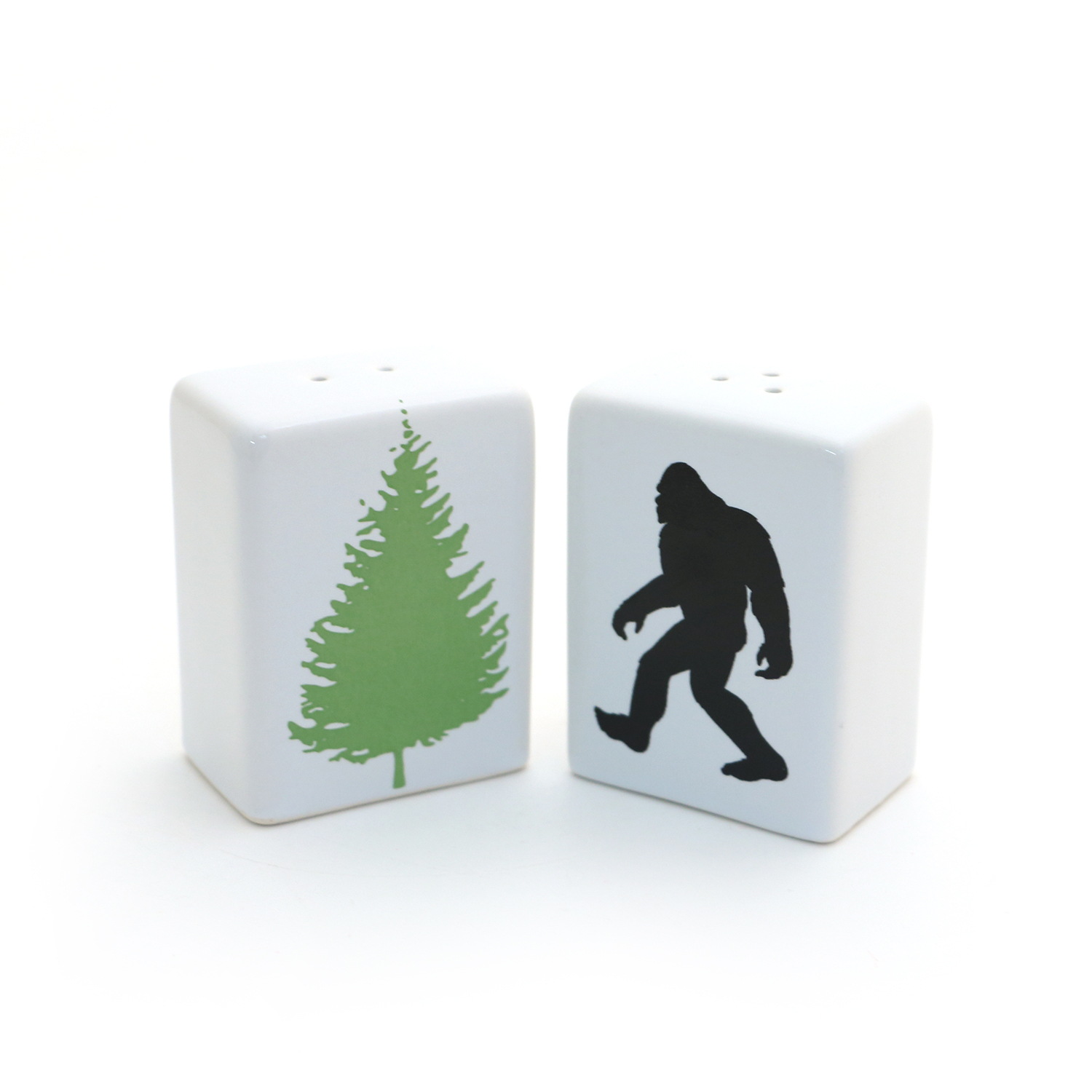The search is over! Our Bigfoot salt and pepper shakers will add a little mythical energy to any table. These are made from stoneware clay, kiln fired several times to over 1900 degrees- safe to place in the dishwasher. They have a rubber stopper for easy filling. Each shaker measures 2.5 inches high x 2 x 1 (rectangular). One shaker has 3 holes, one has 2. Great gift for a cryptid lover.
