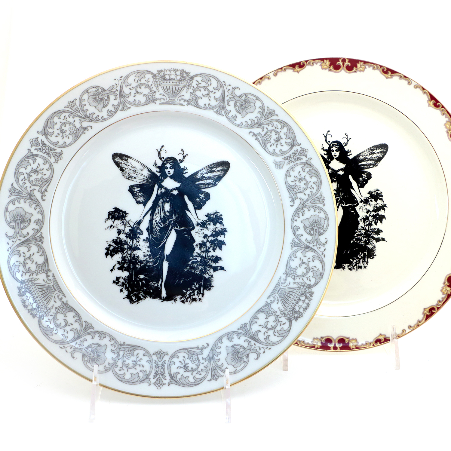 1 each of Assorted 10" Dinner plates (RANGE FROM 10" - 10.5") with Vintage Fairy Image