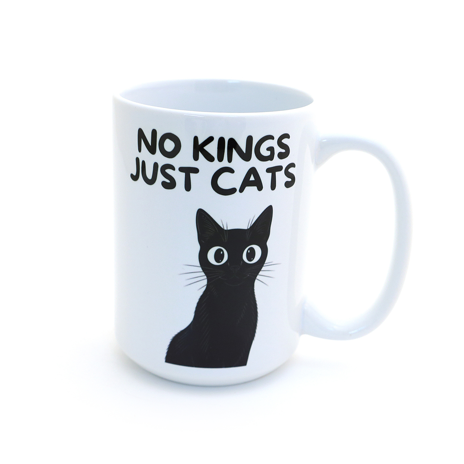 No Kings Just Cats mug. Mix politics with your coffee or tea. back reads: Kittens Against Trump. Great gift for any left leaning liberal or antifascist. PURRSIST!